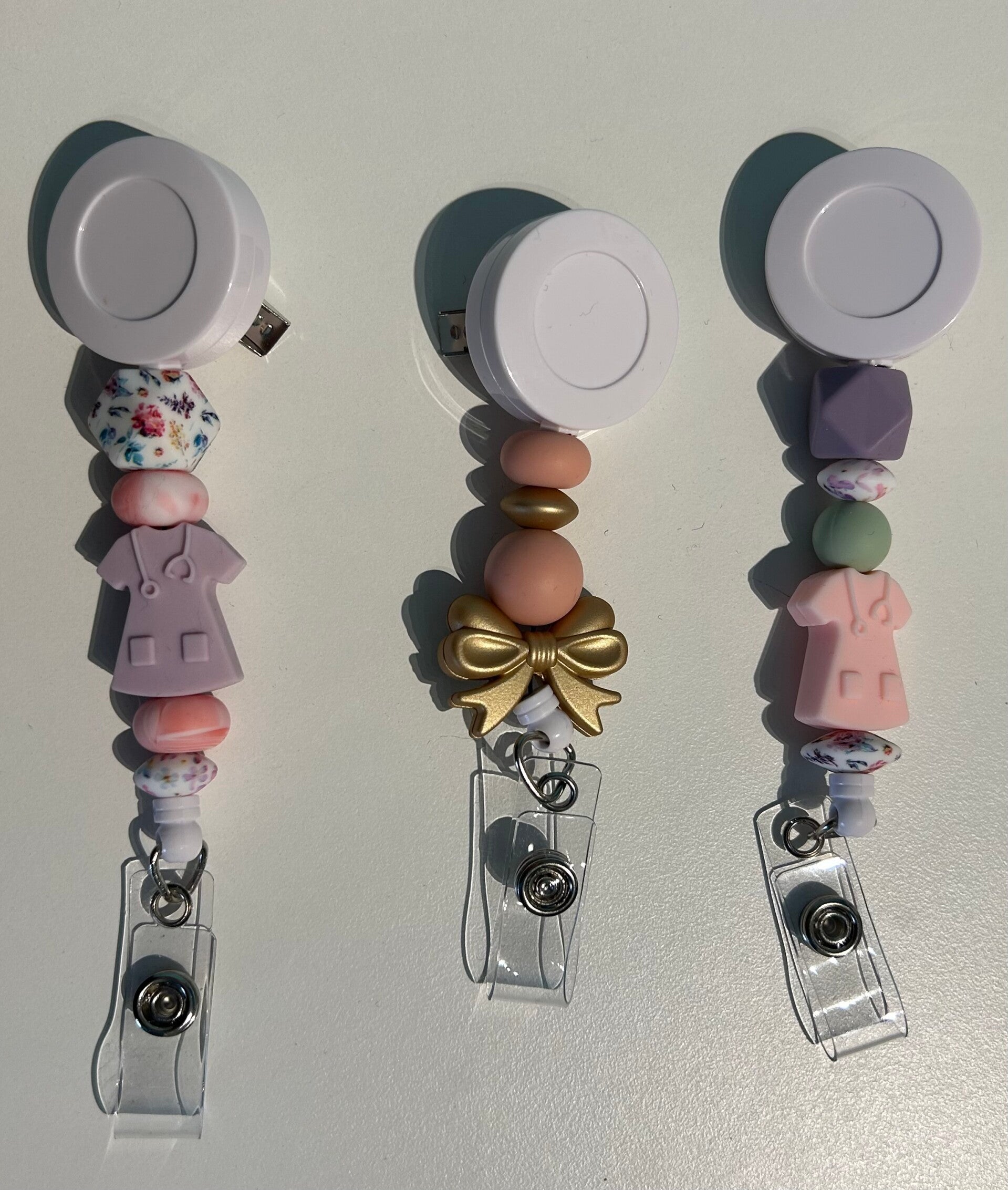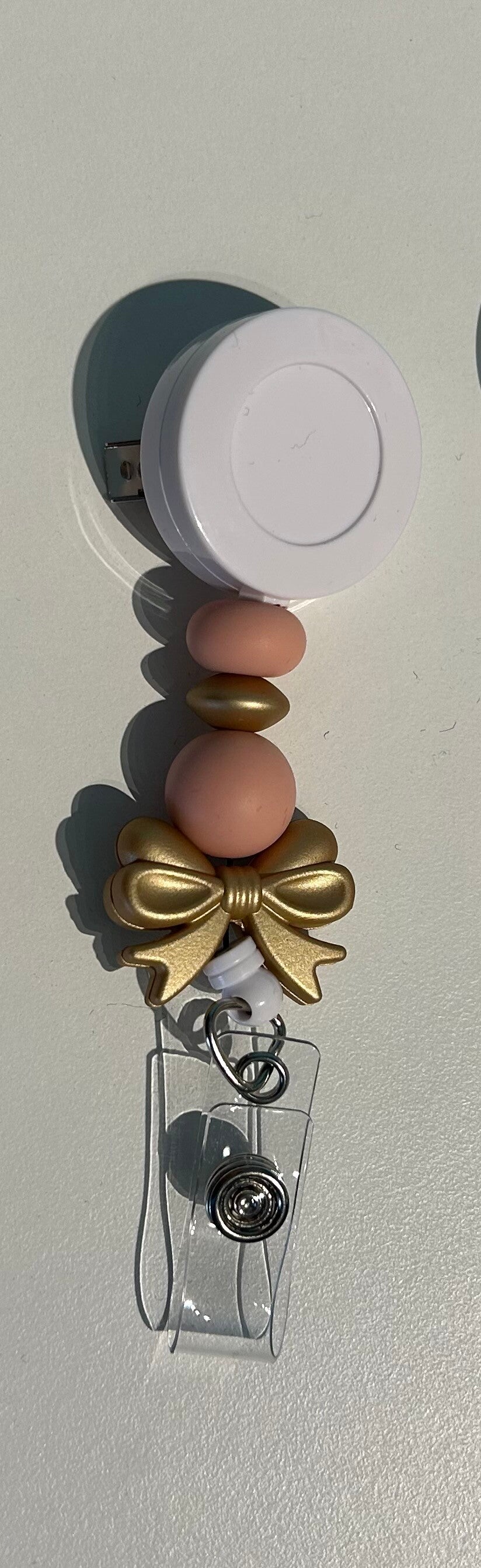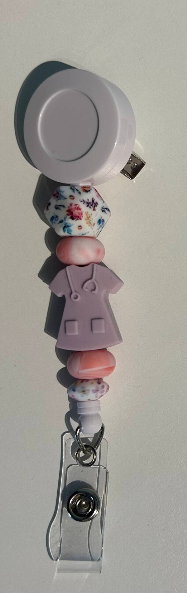 De badgehouder is gemaakt met siliconen parels.n