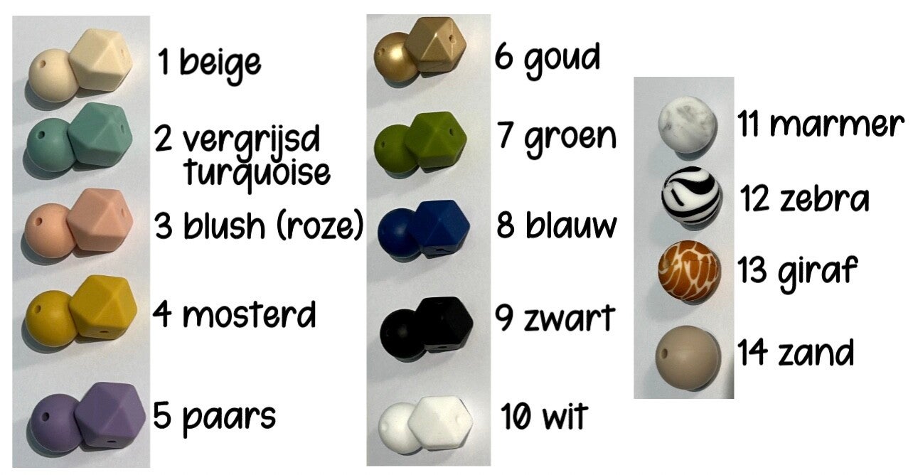 veiligheid: De siliconen kralen zijn getest conform de Europese veiligheidsnorm. Het koord is max. 22 cm lang (zonder de clip) en voldoet aan de geldende Europese normen. Het product wordt ook steeds getest op veiligheid voor verzending.