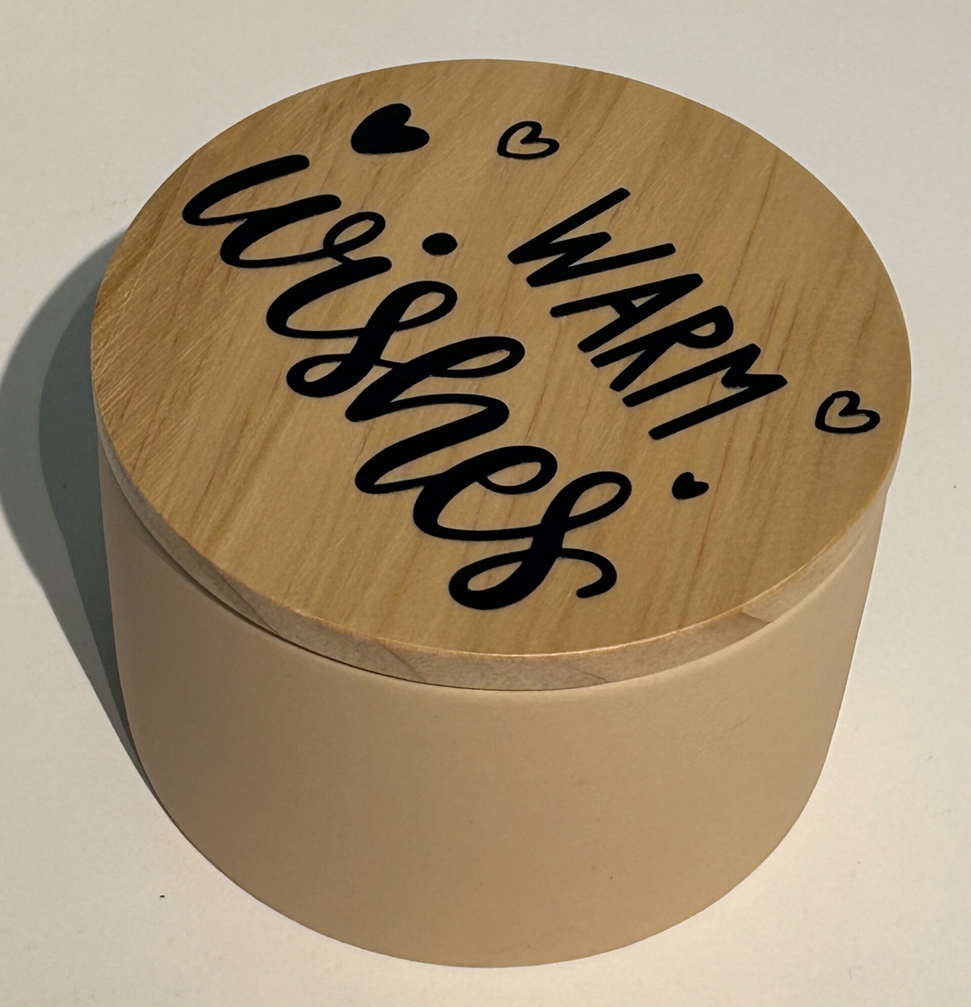 het deksel wordt afgewerkt met een sticker met de gekozen tekst in het zwart of wit