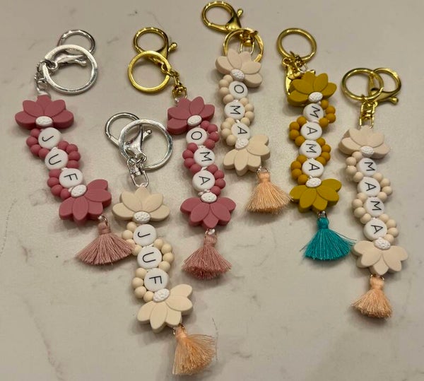 Voor een sleutelhanger met MAMA betaal je €0,50 meer omdat deze een 4 letters heeft.