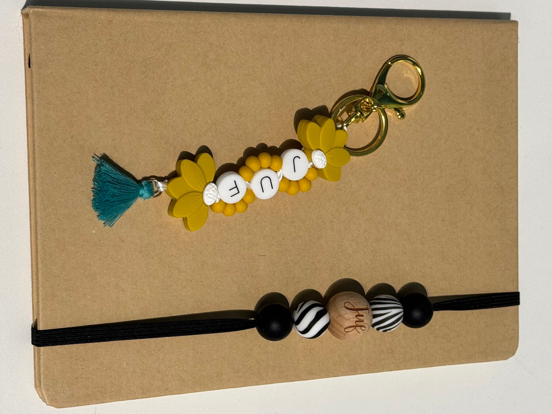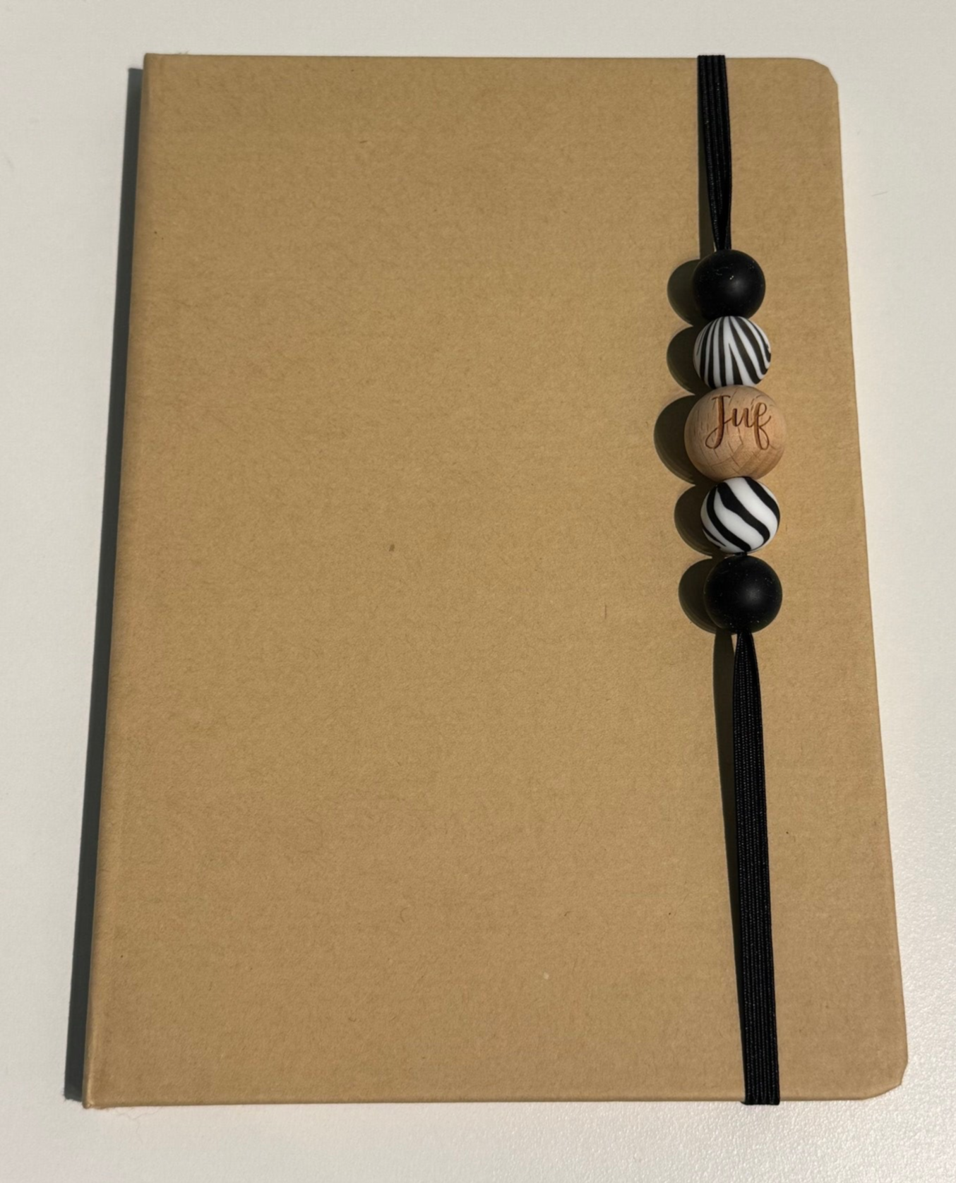 Dit notitieboek is afgewerkt met siliconen kralen.