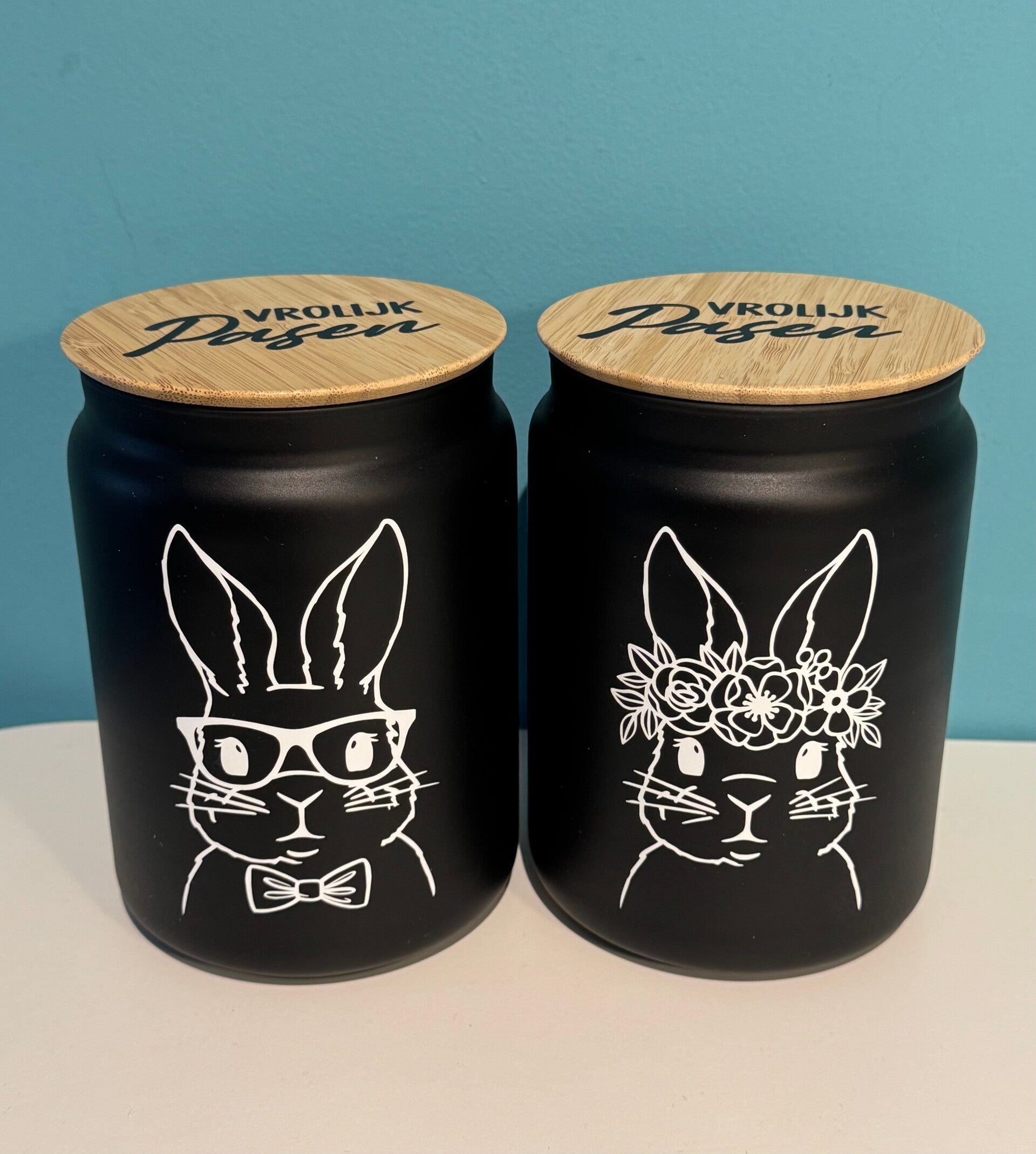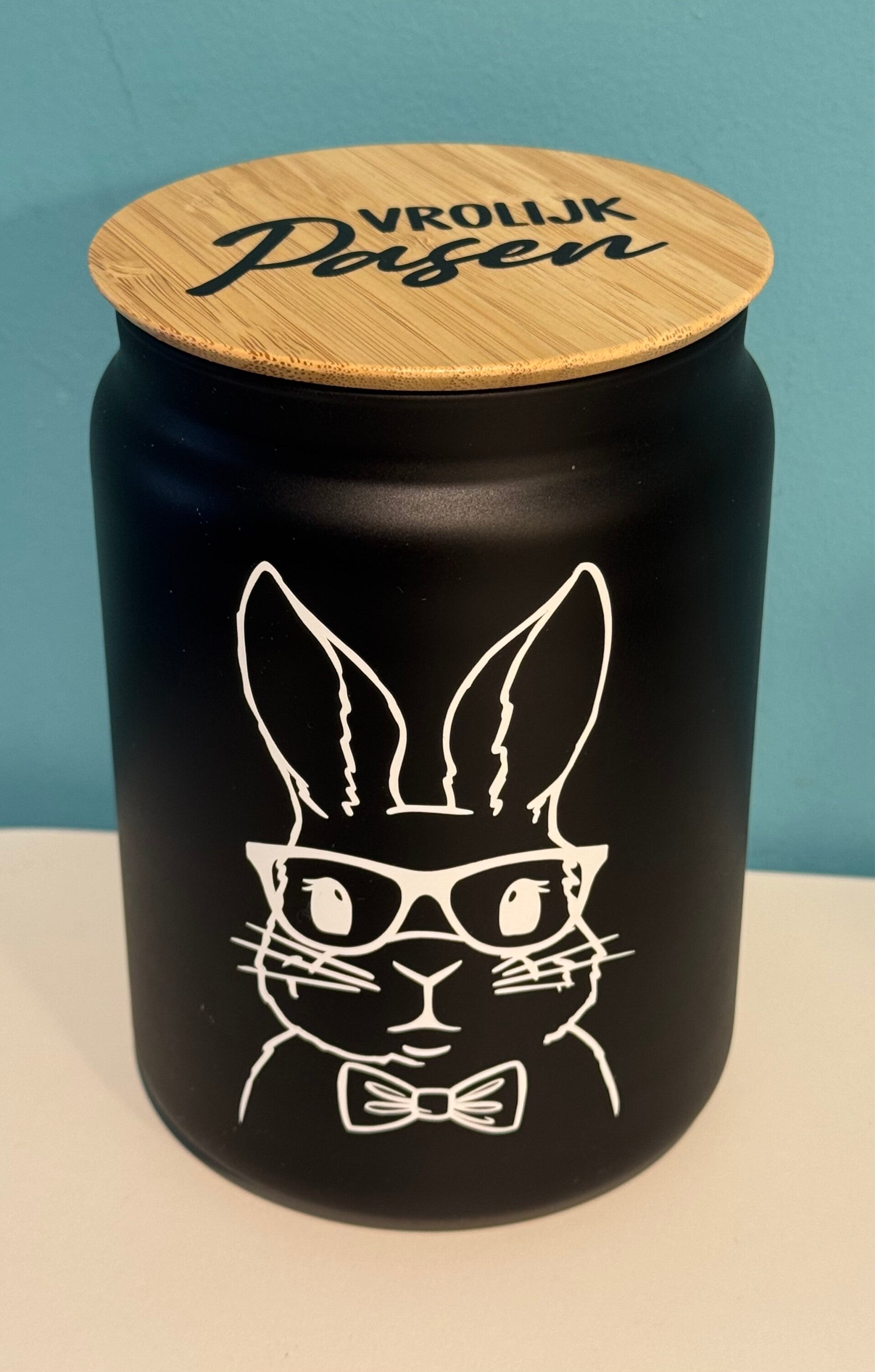 glazen zwarte bokaal met bamboe deksel