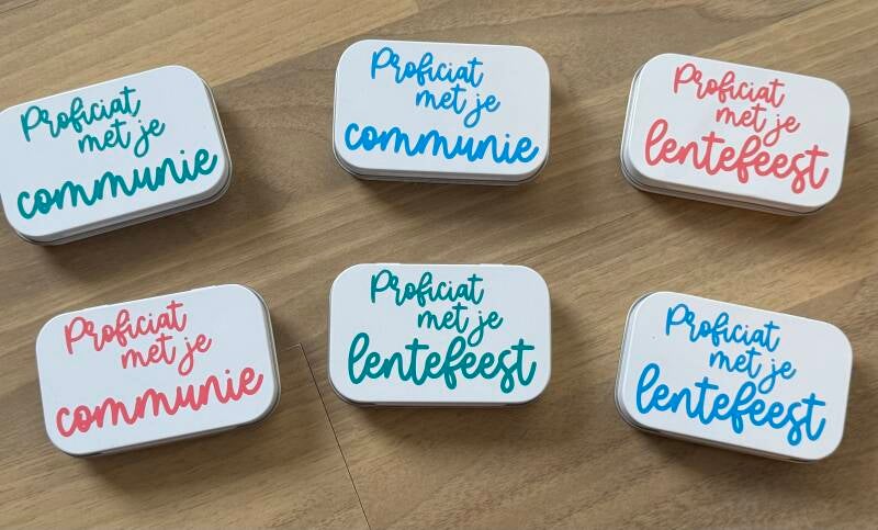 Kies uit verschillende kleuren en teksten, zodat het perfect past bij de gelegenheid én de persoon die je wil verrassen. Persoonlijk, creatief en meteen klaar om te geven.
