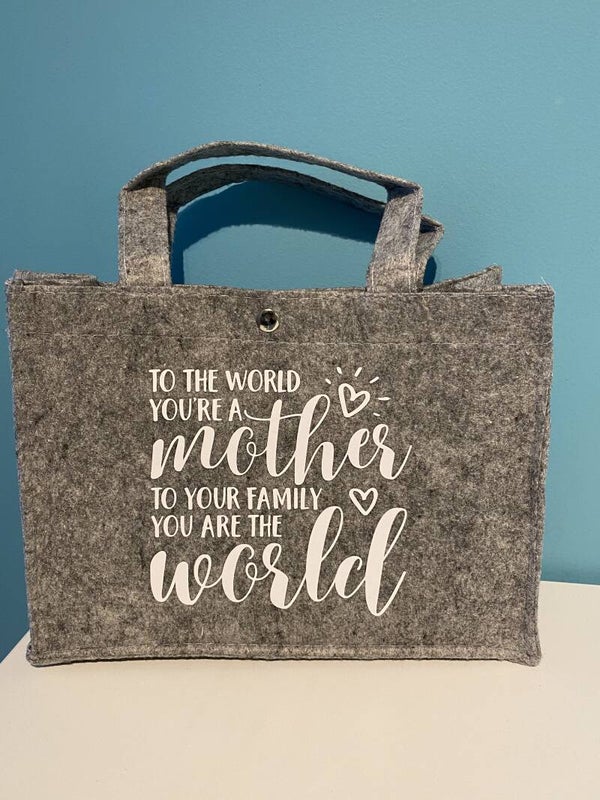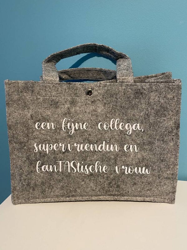 vilten draagtas - grijs - afmetingen: 26 + 10 x 20 cm