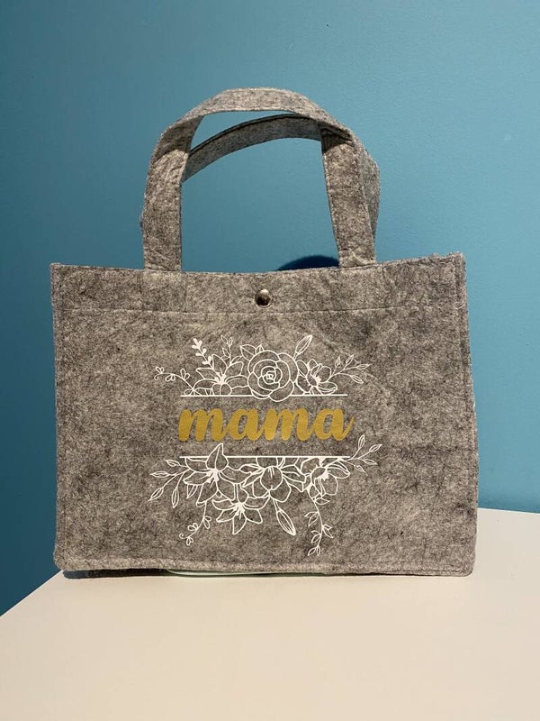 vilten draagtas klein formaat- grijs - afmetingen: 26 + 10 x 20 cm