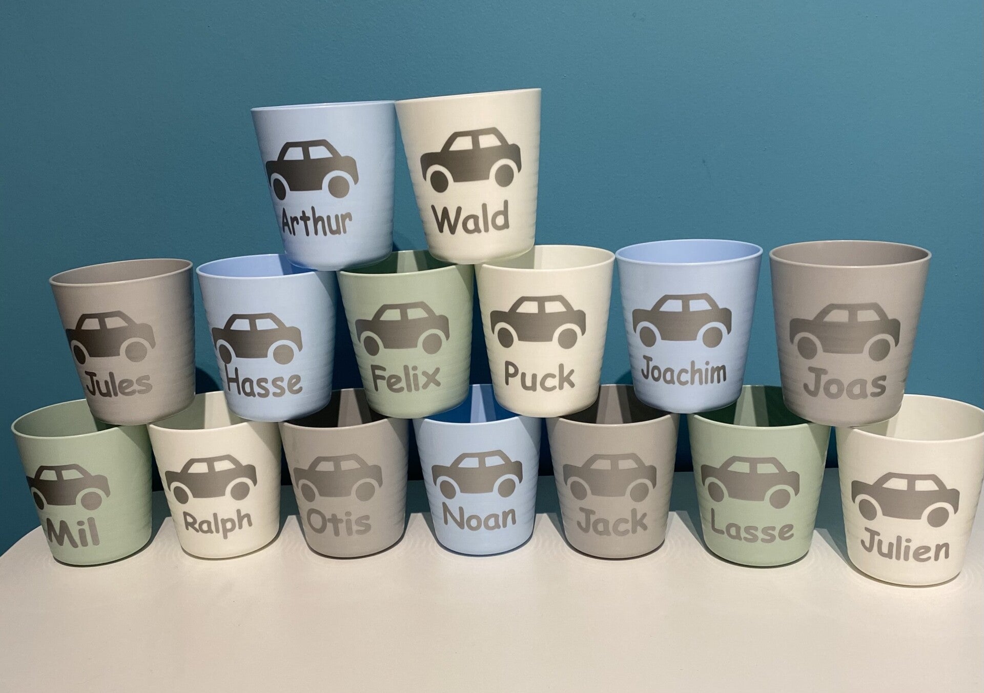 zes verschillende pastelkleurtjes beschikbaar - u ontvangt een mix waarbij we natuurlijk rekening houden met de kleuren voor de jongens en de meisjes