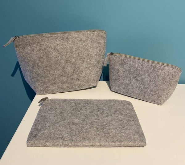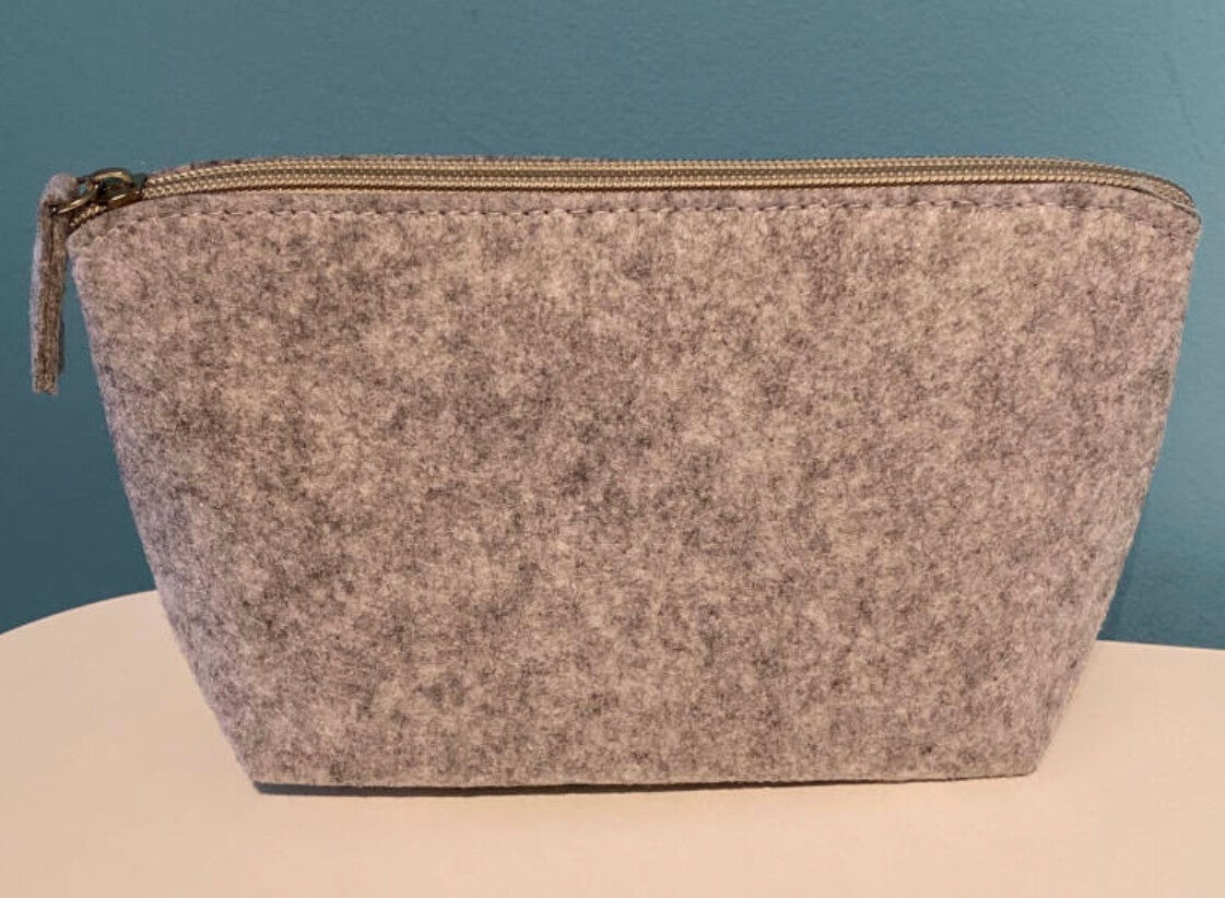 lichtgrijze toiletzak uit vilt- KLEIN formaat