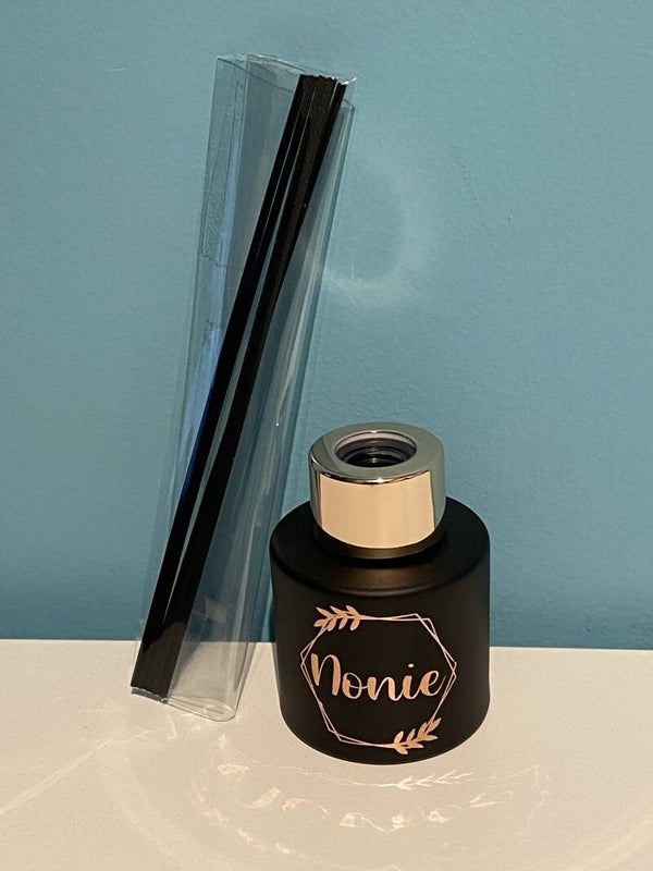 geurflesje gevuld met parfum (magnolia) en stokjes